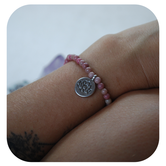 Rhodochrosit-Mala-Armband mit Lotusanhänger | Stein der Selbstliebe | Handgefertigt in Österreich