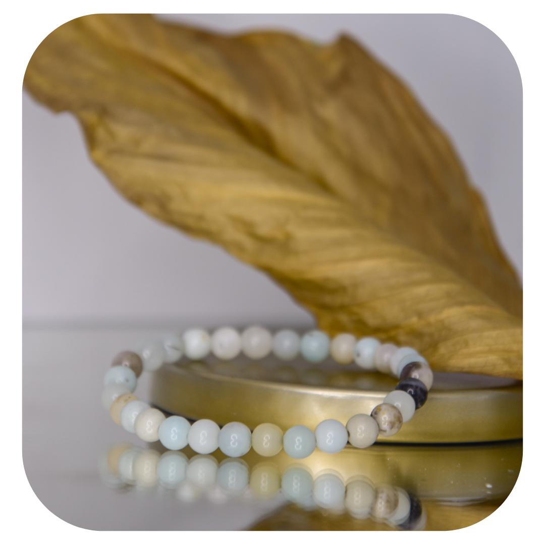 Trage deine Intention mit unserem handgefertigten Amazonit-Mala-Armband.