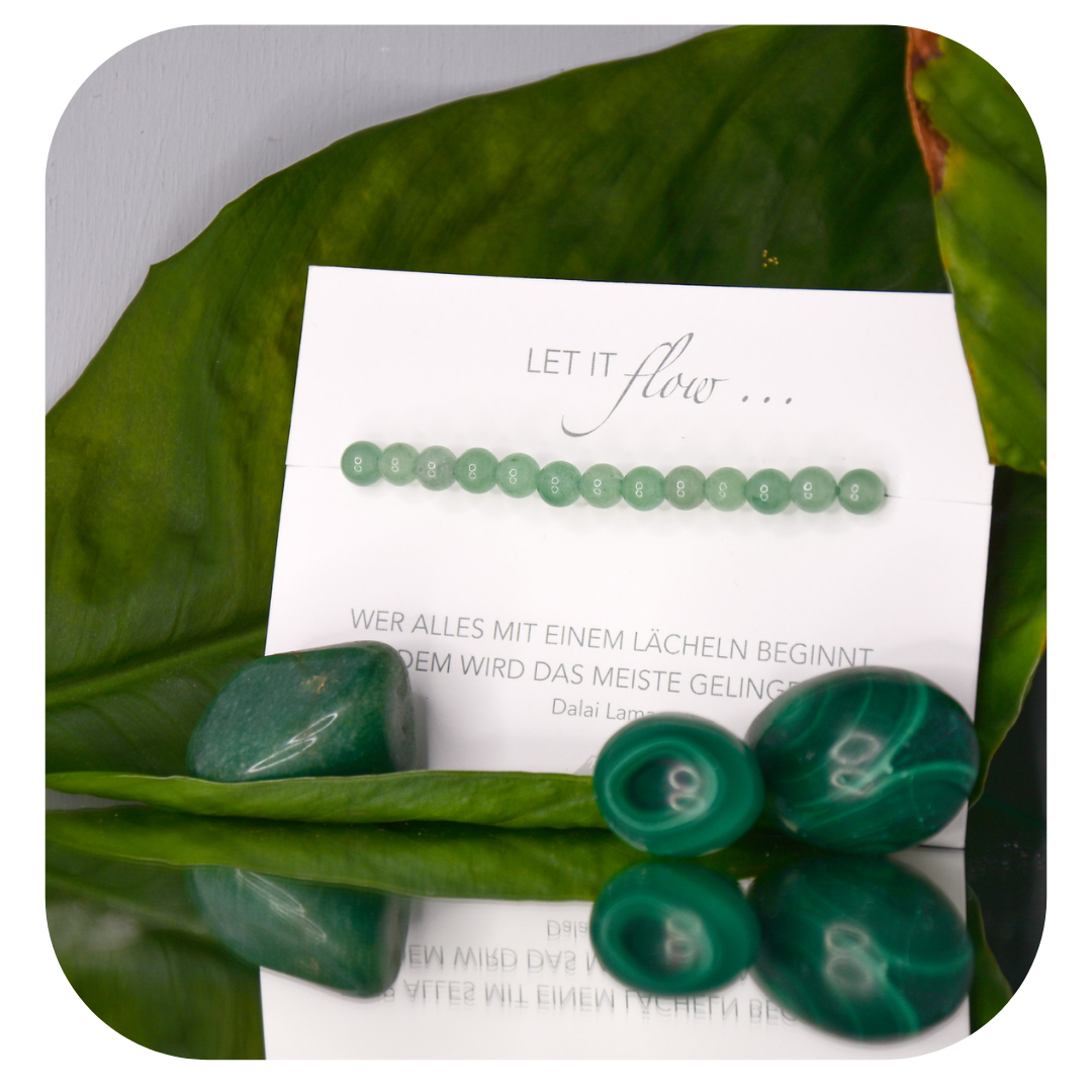 Aventurin ist der Stein der Chancen und des Optimismus. Dieser lebendig grüne Stein wirkt spannungslösend, fördert Gelassenheit, Mut und Zuversicht und steigert die Lebensfreude. Perfekt, um Wohlstand zu manifestieren und neue Möglichkeiten willkommen zu heißen.