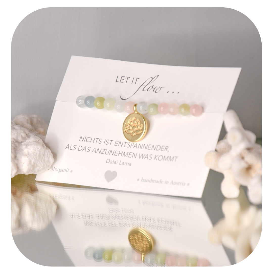 Morganit-Mala-Armband mit Lotusanhänger | Stein der Liebe | Handgefertigt in Österreich