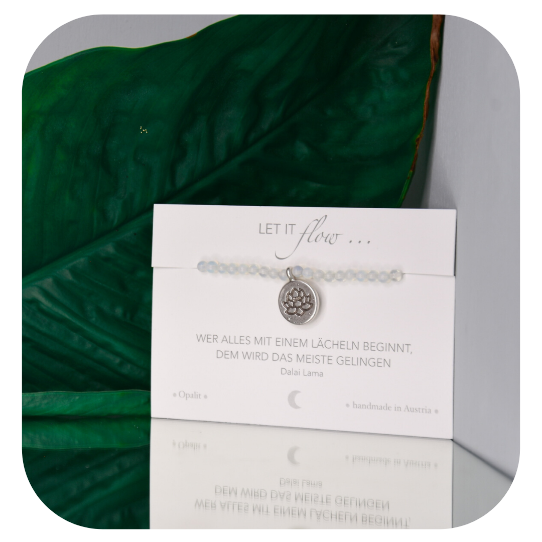 Opalit-Mala-Armband mit Lotusanhänger | Stein des emotionalen Gleichgewichts | Handgefertigt in Österreich